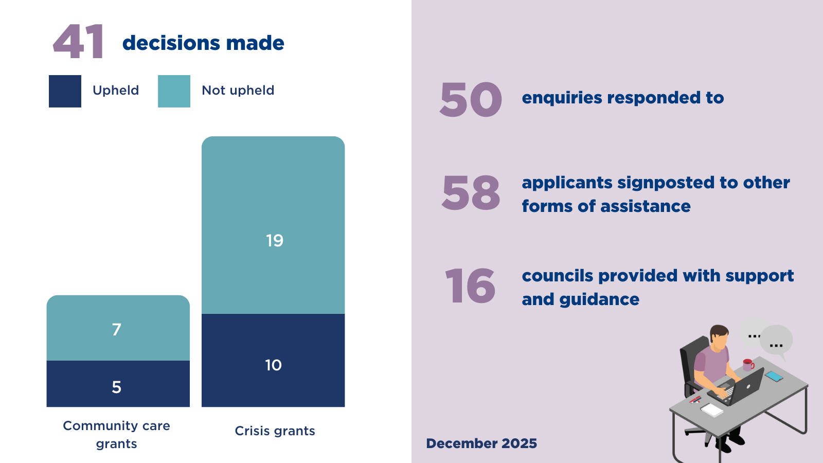 - upheld 5 (42%) of community care grants and 10 (35%) of crisis grants
