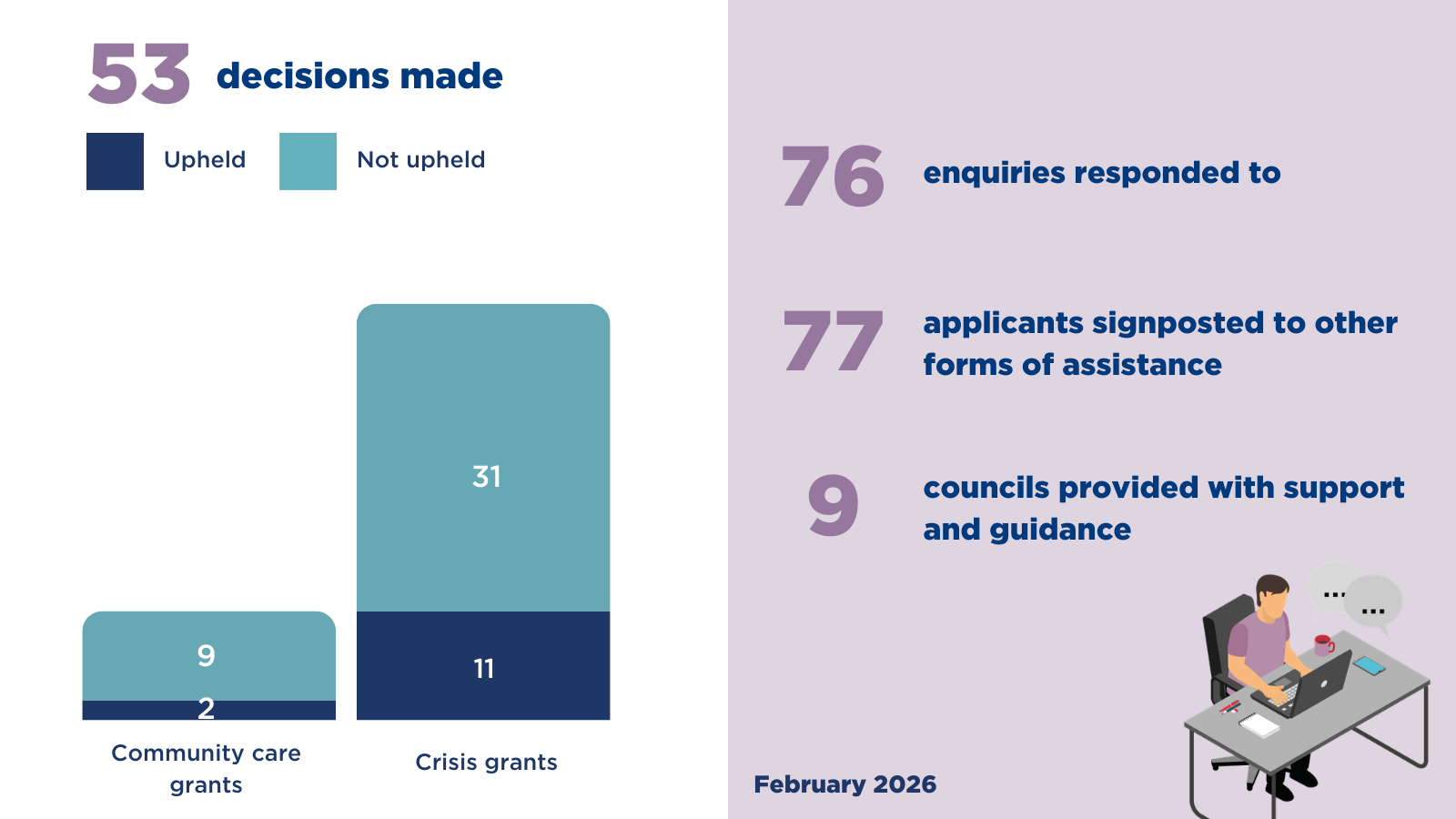 - upheld 2 (18%) of community care grants and 11 (26%) of crisis grants